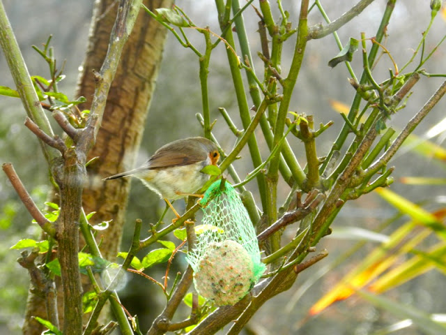 La nature changeante ..si belle. moi aussi, je nourris les oiseaux. Sans te froisser, je te donne un petit conseil. Retire les petits sacs contenant les boules de graisse et mets les dans une mangeoire adaptée. Les passereaux peuvent se prendre les pattes dans ces petites grilles et en mourir. Au début, je faisais pareil mais c'est la LPO qui a alerté sur ce problème.